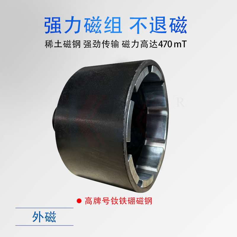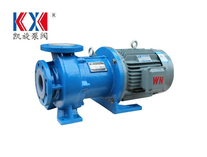 IMC氟塑料磁力泵,利用內外永磁體傳動,實現扭矩無接觸傳遞,當電動機帶動外轉子總成旋轉時,通過磁場的作用磁力線穿過隔離套帶動內轉子總成和葉輪同步旋轉,隔離套將介質完全密封,從而達到無泄漏輸送介質的目的。過流部件采用氟塑料及高純度碳化硅制成,具有良好的耐腐蝕性和密封性,可輸送甲醇、乙醇、甲苯、氯苯、苯酚、乙醚等有機溶劑和易燃易爆揮發性強腐蝕性強的介質。