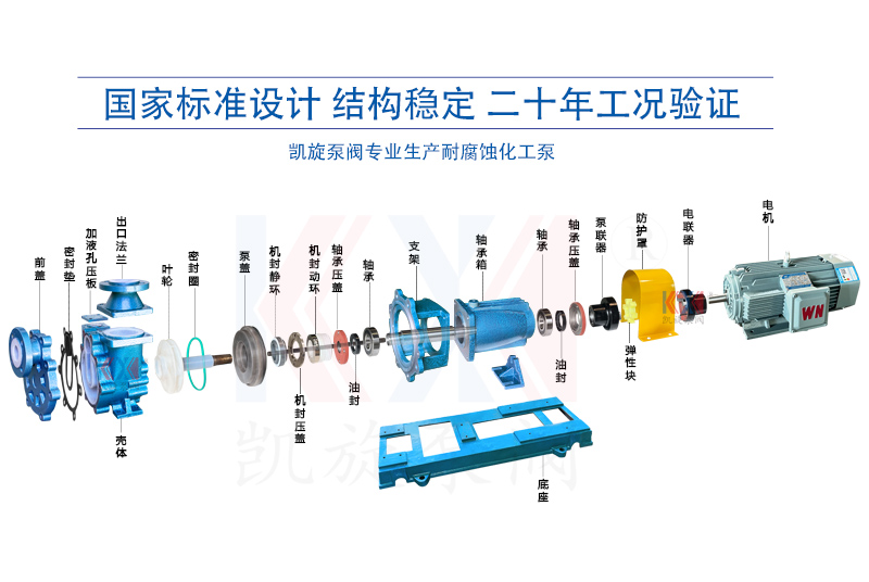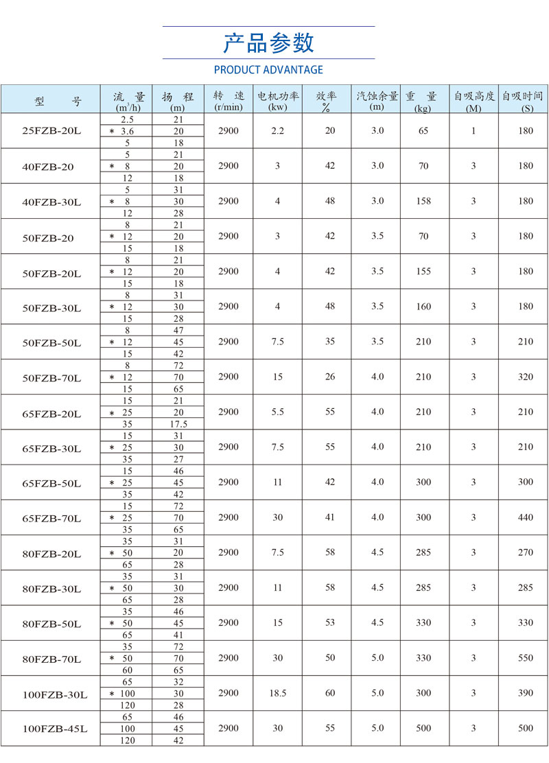 FZB型氟塑料自吸泵的主要部件有泵體、止回閥、前蓋、密封墊、泵蓋、葉輪、密封、軸承箱、電動(dòng)機(jī)、底座。過流部件使用氟塑料合金制造。泵體部分由吸液室、儲(chǔ)液室、蝸殼、回流孔、氣液分離室等組成。當(dāng)泵啟動(dòng)后,在離心力的作用下,泵體吸水室中的剩余液體與進(jìn)液管路中的空氣,被葉輪攪拌成氣水混合物。混合物經(jīng)蝸殼進(jìn)入氣液分離室,隨著流速的減慢,導(dǎo)致氣水分離,空氣由泵出口排出,液體經(jīng)回水孔返回泵內(nèi)。反復(fù)多次循環(huán),進(jìn)液管道中的空氣被排凈,使泵內(nèi)形成一定的真空度,達(dá)到自吸的作用。 FZB自吸泵是抽低液位腐蝕性介質(zhì)的理想用泵。尤其適用于抽吸低位槽工況,安裝時(shí)無需另配底閥,自吸高度范圍在1-5米內(nèi)。擁有更大的氣液分離室,通暢的回流通道,且進(jìn)口設(shè)計(jì)有先進(jìn)的止回閥,防止停泵后液體回流。泵高低壓區(qū)密封可靠,自吸時(shí)間明顯縮短,進(jìn)口抽空力強(qiáng),大幅提升自吸性能。泵體設(shè)計(jì)有灌液孔、放液孔,最大限度滿足了不同工況下的使用需求。